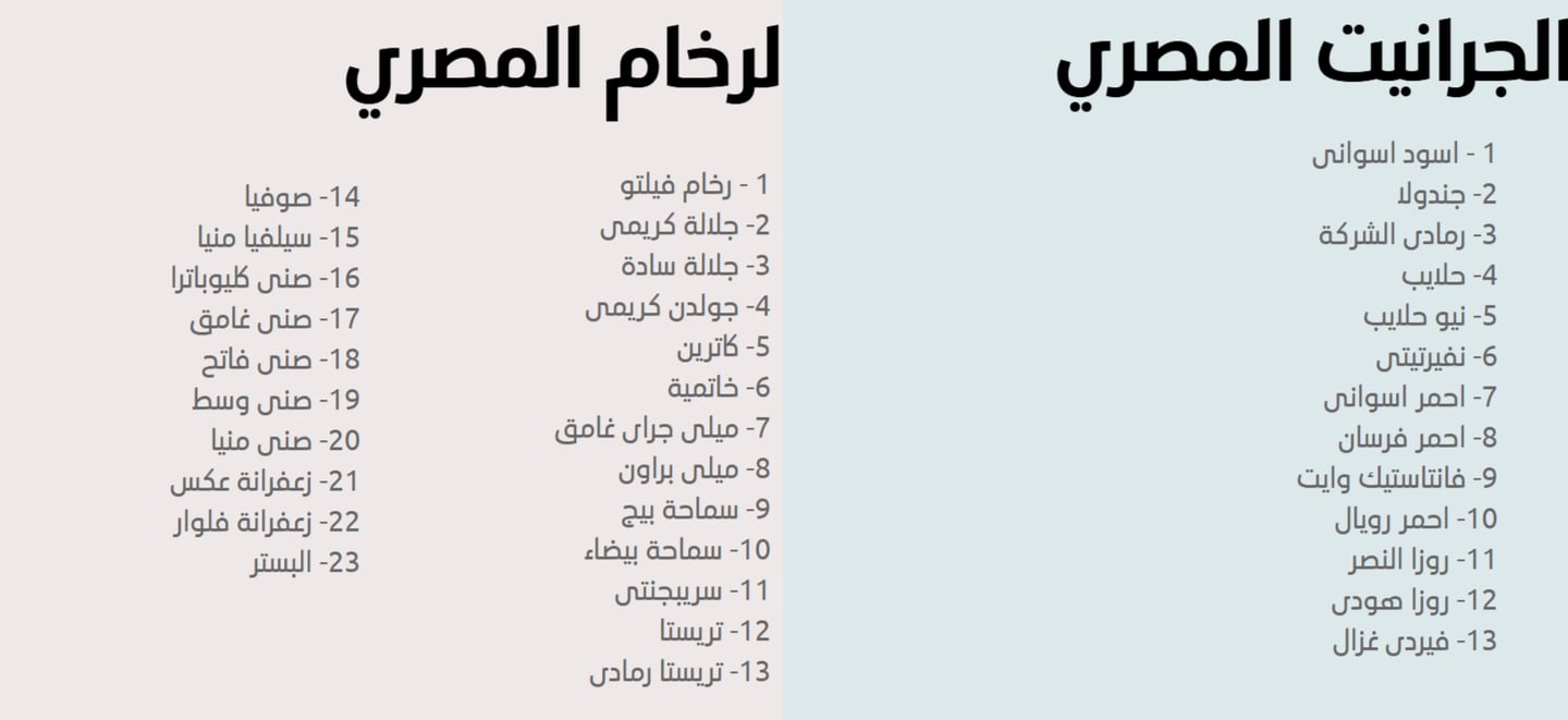نماذج من الرخام والجرانيت بألوان وتصاميم متنوعة